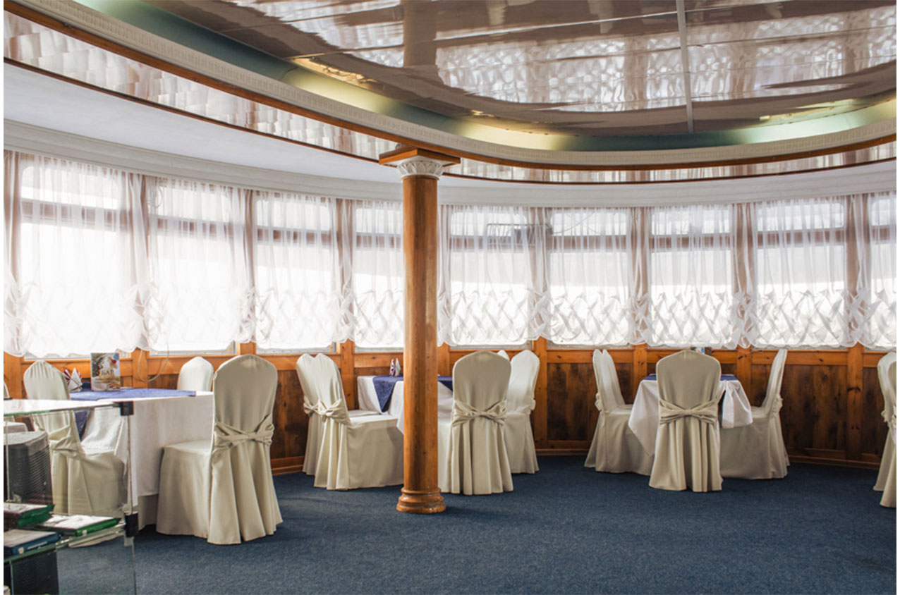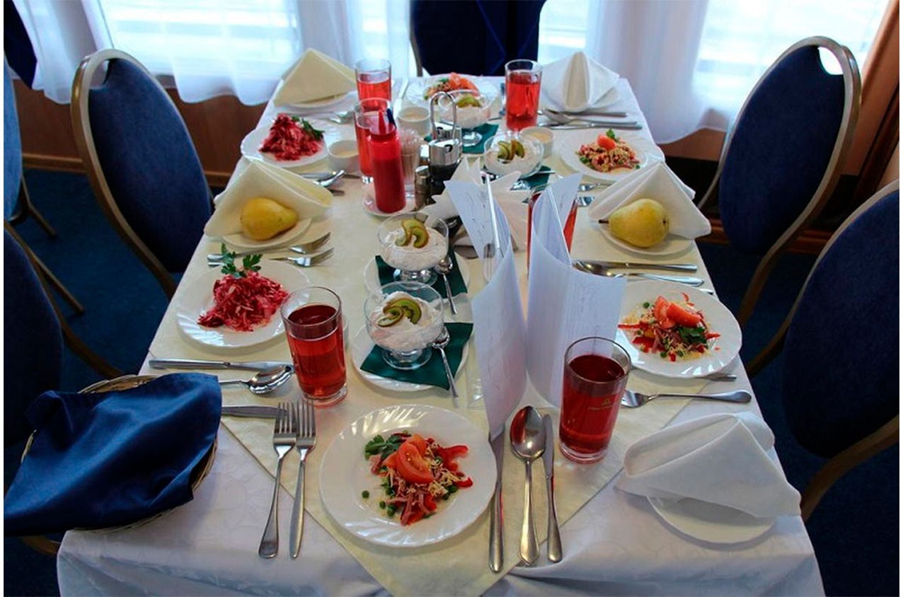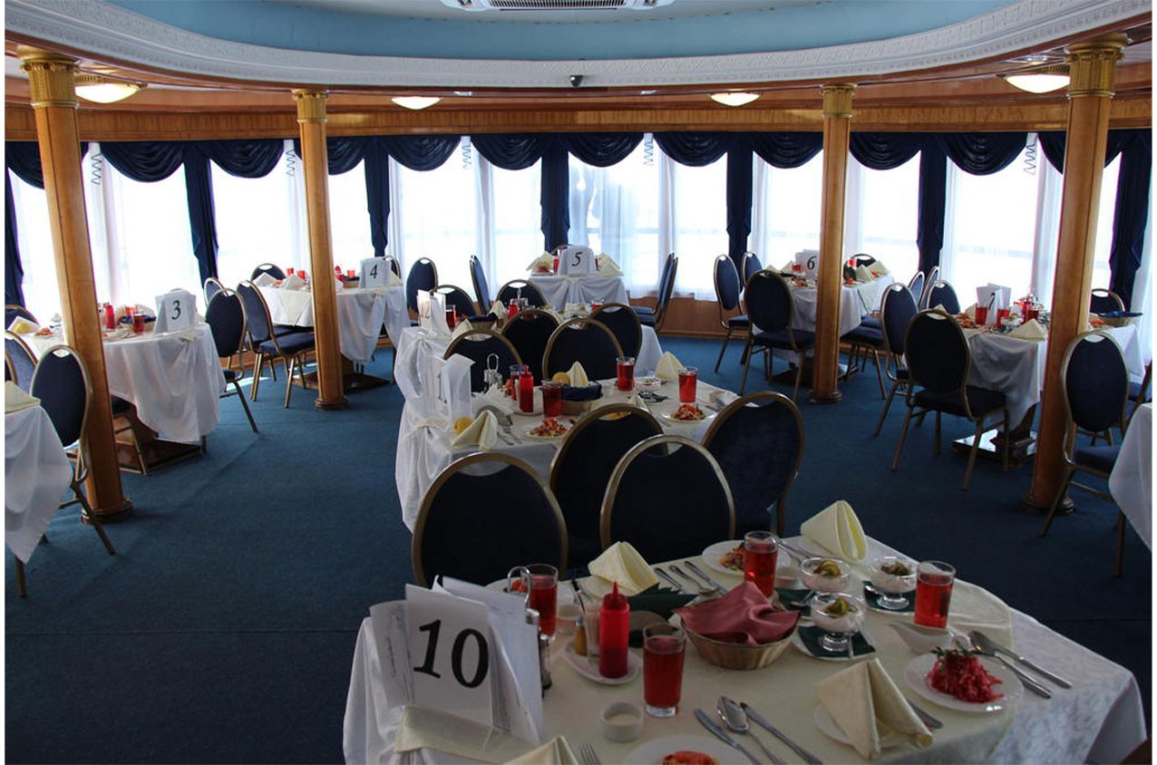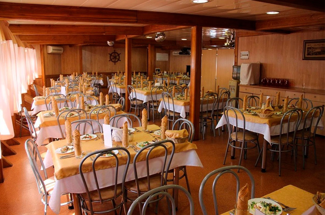 На главной и шлюпочной палубах находятся рестораны, в которых организовано питание туристов во время круиза.