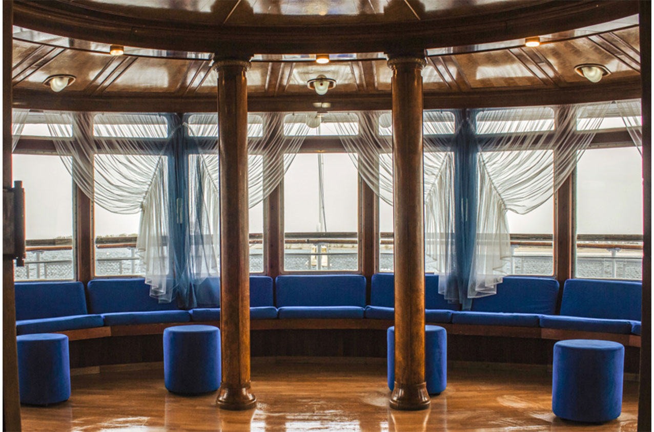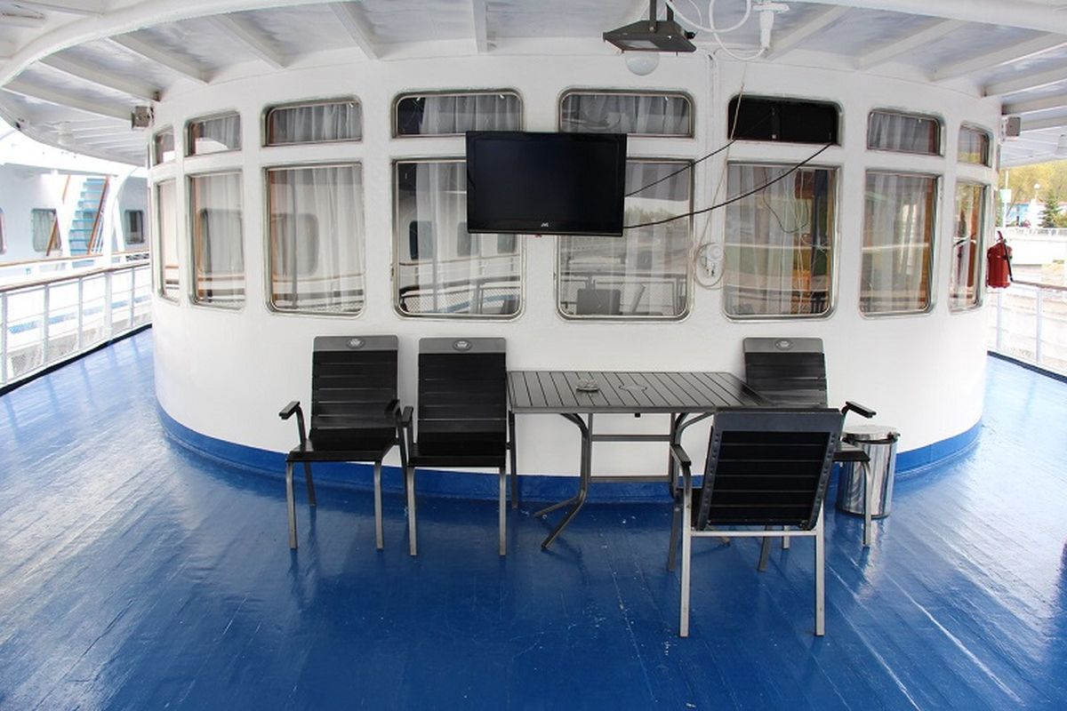 На верхней палубе расположен солярий, где можно позагорать или принять воздушные ванны в теплую погоду или полюбоваться пейзажами за бортом.