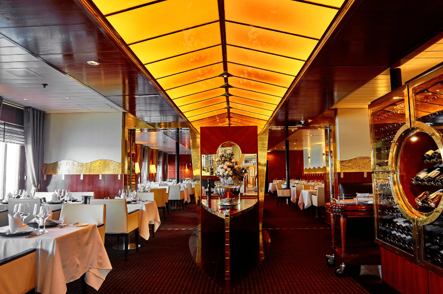 Главный ресторан теплохода предлагает гостям изысканные блюда и знаменитые напитки, лучшие вина, закуски, десерты, кофе и аперитивы.