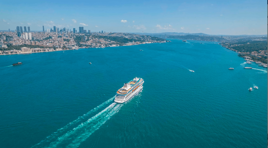 На официальном сайте «Единого центра бронирования речных круизов» можно купить круиз на теплоходе «Astoria Grande» из Сочи с остановками в портах Стамбул, Чешме, Синоп, Трабзон и на острове Бозджаада.