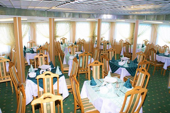 В двух ресторанах на борту путешественникам предлагаются завтраки, обеды и ужины по заказному меню. В круизах продолжительностью менее 5 дней питание организовано по заранее утвержденному меню. В более продолжительных рейсах действует предварительный заказ, выбор блюд со 2-ого дня круиза.