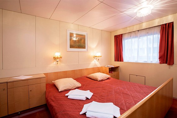 Двухместная каюта со всеми удобствами, расположенная на шлюпочной палубе. Площадь каюты ≈ 9,8 м². В каюте: два спальных места, шкаф для одежды, холодильник, фен, радио, ванная комната (душ, туалет, раковина), кондиционер, обзорное окно, розетка 220V.