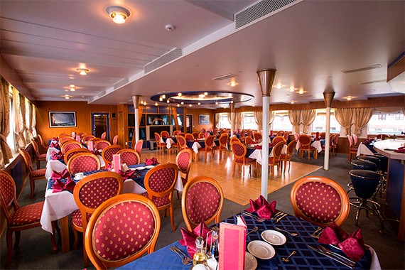 Питание, организованное по гастрономической концепции «Родные берега». Круизная кухня выполнена в лучших традициях побережья Поволжья, Дона, Чёрного моря, Енисея, Русского Севера и Восточной Сибири. В приготовлении используются свежие локальные продукты из местных регионов путешествия.
