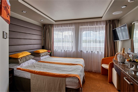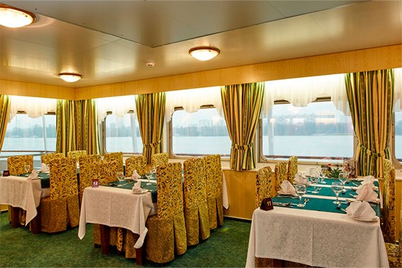 На теплоходе к услугам путешественников два ресторана — «Старая Москва» на средней палубе и «Арбат» на шлюпочной. В ресторане «Арбат» размещаются гости из кают «люкс» и «полулюкс». К каждому ужину Вам будет предложен комплимент от бармена: бокал красного или белого вина, рюмка водки, бокал пива или сока — на Ваш выбор.