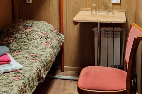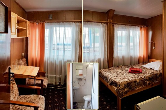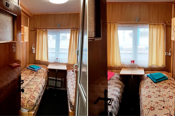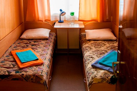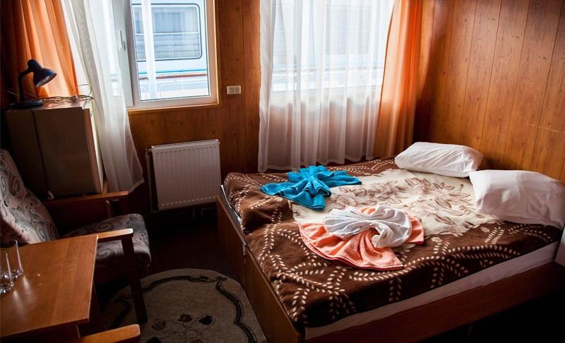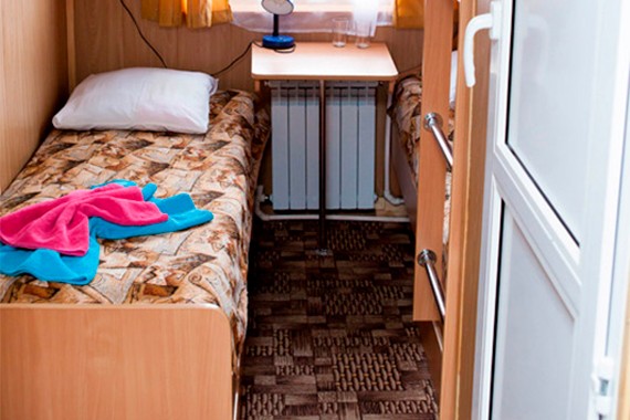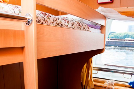 Двухместная каюта с частичными удобствами, расположенная на главной палубе. В каюте: двухъярусная кровать, столик, радио, шкаф, розетки 220V, раковина, туалетные принадлежности (шампунь, мыло, гель для душа), обзорное окно.