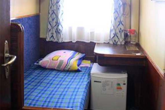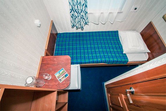 Одноместная каюта со всеми удобствами, расположенная на шлюпочной палубе. Площадь каюты от 5 до 6 м². Мини-бар пополняется за дополнительную плату. В каюте: односпальная кровать, шкаф для одежды, столик, холодильник, мини-бар, кондиционер, радиоточка, зеркало, ванная комната (раковина, душ, туалет), обзорное окно.