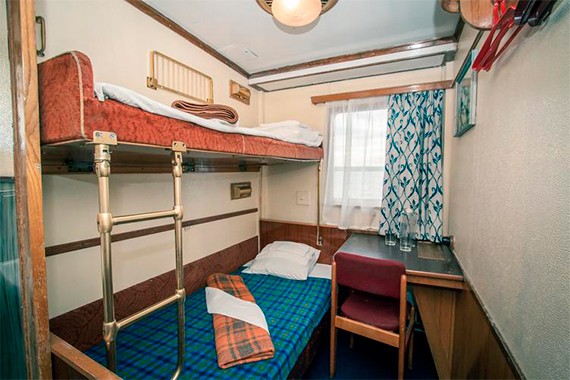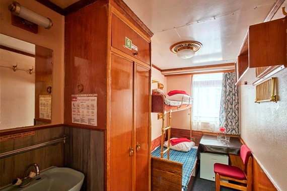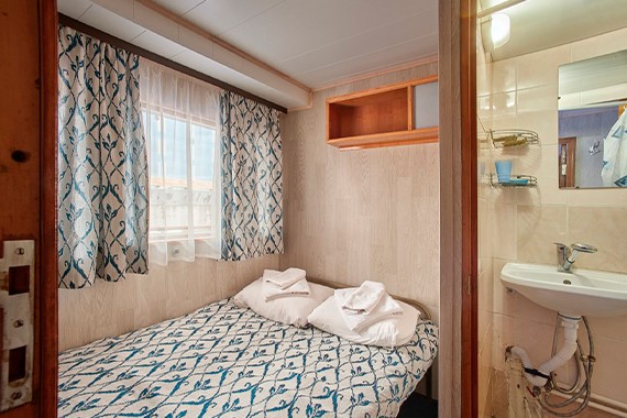Двухместная двухъярусная каюта с частичными удобствами, расположенная на главной палубе. Душ и туалет на палубе. В каюте: двухъярусная кровать, полка с плечиками для одежды, раковина с холодной и горячей водой, стол и стул, радио, розетка, обзорное окно.