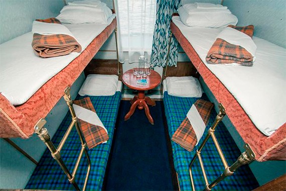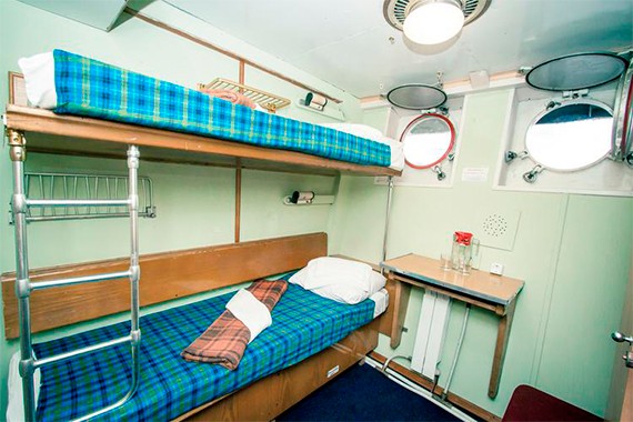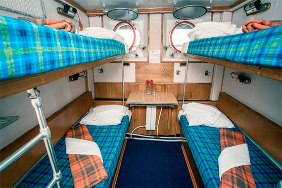 Четырехместная двухъярусная каюта, расположенная на нижней палубе. Площадь каюты ≈ 5,5 м . Душ и туалет на палубе. В каюте: две двухъярусные кровати, столик, крючки для одежды, радио, розетка, иллюминатор.