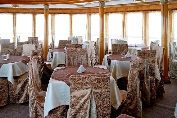 В стоимость путевки также включено трехразовое питание, которое осуществляется по заказной системе. Наслаждайтесь красивой подачей и вкусовыми качествами ресторанных блюд, наблюдая за живописными пейзажами. На борту два ресторана, в которых можно отведать блюда русской, французской, итальянской, японской и вегетарианской кухни. Пассажиры могут заказать: борщ с пампушками, блины с разнообразными начинками, уху с свежими рыбными ингредиентами, пиццу с разнообразными топпингами, освежающие салаты с оливковым маслом, рататуй с прованскими травами крем-брюле, эклеры в десертном меню и многое другое.