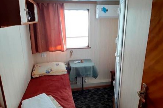 Шлюпочная палуба. 1-но местная, одноярусная, умывальник (холодная и горячая вода), шкаф для одежды, радио, эл.розетка, окно, S = 4,5 кв.м.