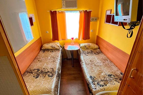 К этой категории относятся каюты: 101–121, 123. Двухместная каюта с частичными удобствами, расположенная на главной палубе. В каюте: кровать, раковина с горячей и холодной водой, кондиционер, телевизор, столик, шкаф.