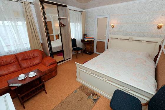 К категории Люкс относятся каюты: 301, 302. Двухместная каюта со всеми удобствами, расположенная на шлюпочной палубе. В каюте: двуспальная кровать, диван-книжка, туалет, раковина, туалет, душевая кабина, фен, кондиционер, холодильник, телевизионная плазменная панель, трюмо, телефон, сейф, столик. Возможно размещение 3-го и 4-го человека на дополнительном спальном месте – диван-книжка