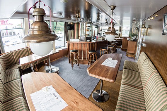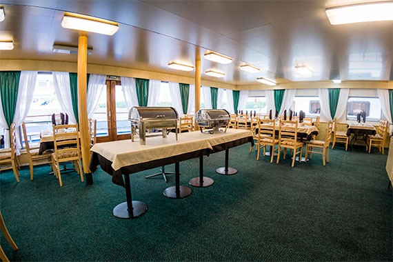 На теплоходе есть настоящая кофейня-кондитерская. Она отлично подойдет для уютных посиделок с друзьями и эстетического наслаждения от меняющихся пейзажей за бортом. В меню различные виды ароматного кофе на любой вкус и вкуснейшие десерты. Все можно попробовать на месте, либо взять с собой.