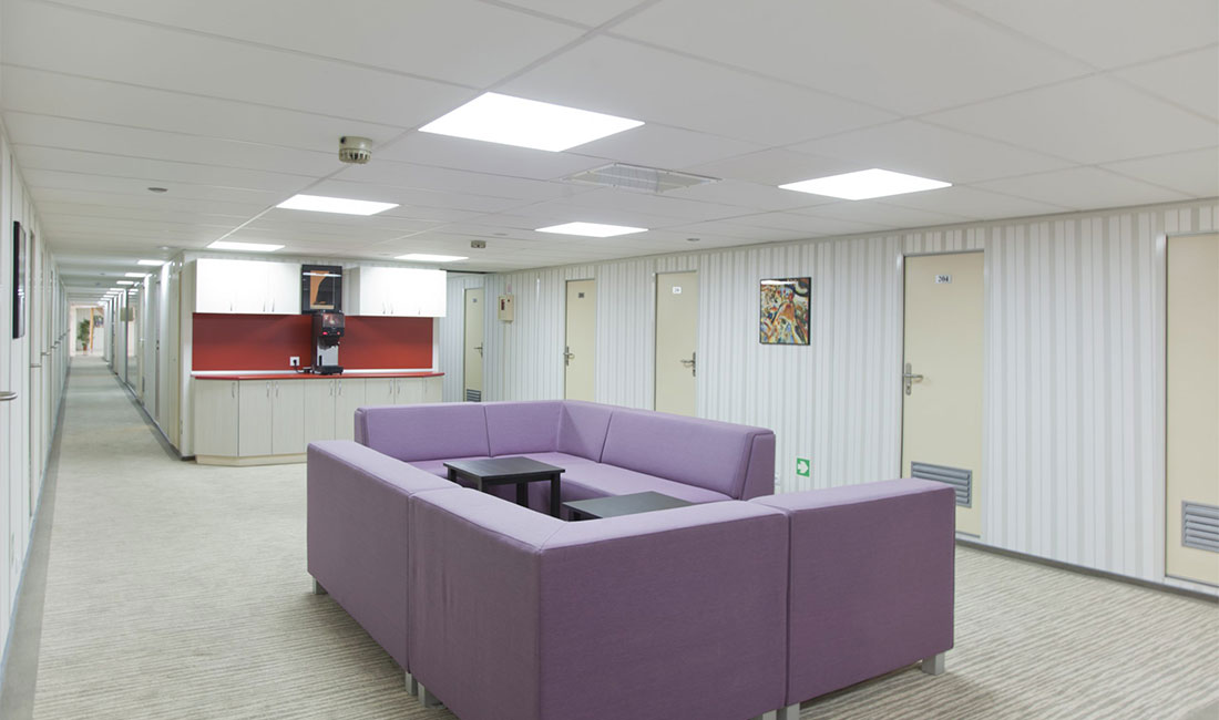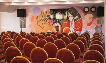 Вместительное помещение с мягкими стульями подходит для проведения различных мероприятий