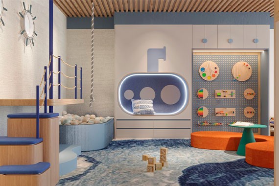 Детский клуб расположится на главной палубе в максимальном удалении от спальной зоны. В нем будут работать профессиональные аниматоры, которые предложат маленьким путешественникам самые разные творческие и обучающие занятия. Подростки и даже многие взрослые будут в восторге от Игротеки с огромным экраном для видеоигр.