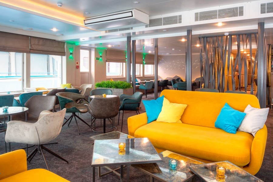 Для комфортного путешествия гостям предлагаются 94 двухместные каюты: 66 кают категории «Полулюкс с балконом» и 28 кают «Комфорт Премиум».