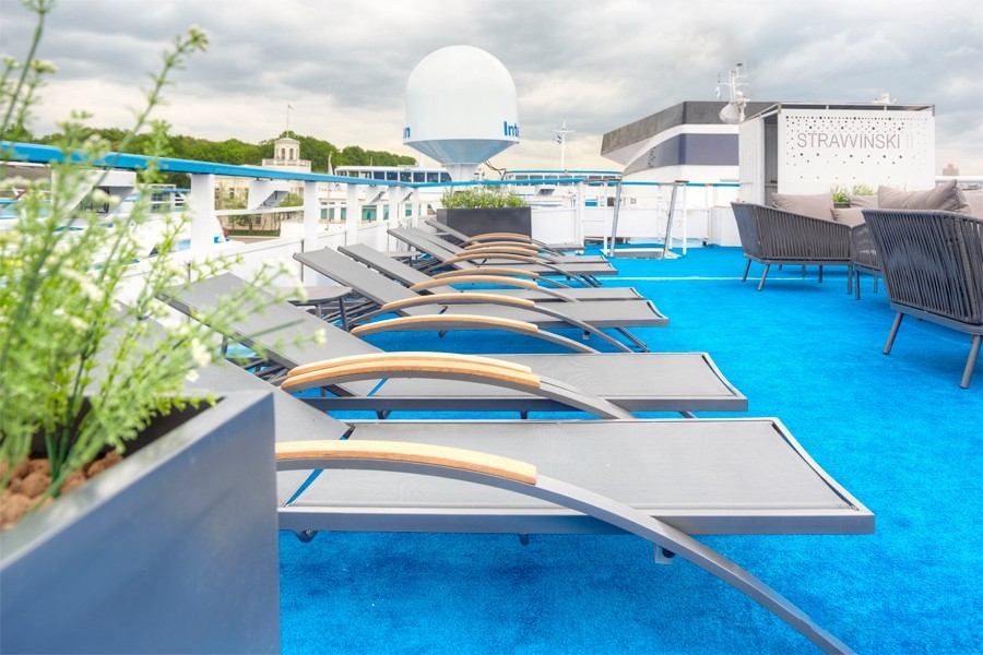 На солнечной палубе оборудованы комфортные зоны для отдыха, где гости могут наслаждаться свежим воздухом и принимать солнечные ванны.