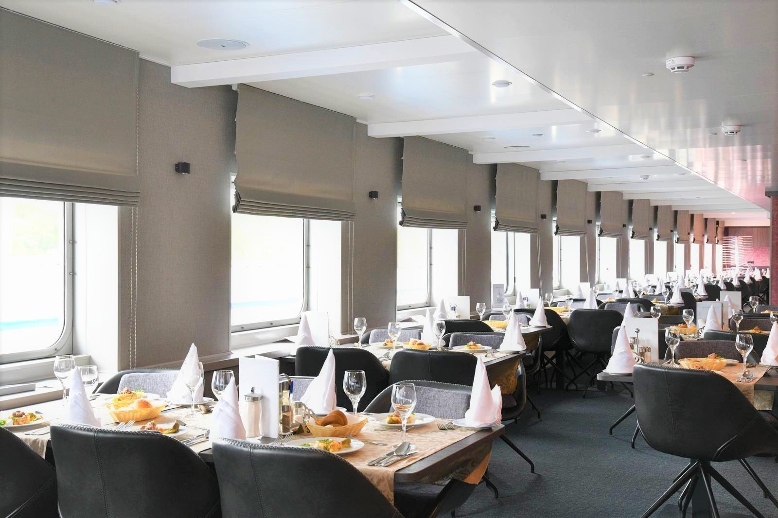 В стоимость круиза уже входит полноценное трёхразовое питание. Утро начинается с завтрака по системе «шведский стол», а на обед и ужин предлагается меню с возможностью выбора блюд, включая варианты для тех, кто придерживается вегетарианского или низкокалорийного рациона.