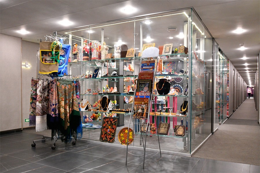 На борту теплохода гости могут провести время в уютном кинотеатре, посетить парикмахерскую или заглянуть в сувенирный киоск за памятными подарками и товарами для путешествия.
