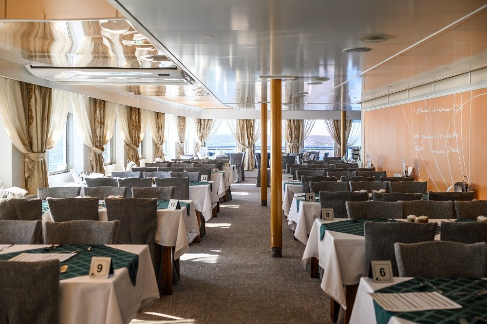 Ресторан на борту предлагает разнообразное меню с блюдами европейской и региональной кухни в уютной атмосфере. Панорамный бар с большими окнами открывает прекрасные виды и приглашает насладиться коктейлями и живой музыкой в расслабляющей обстановке.