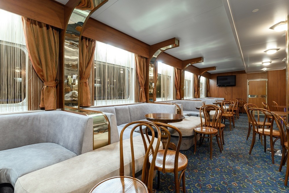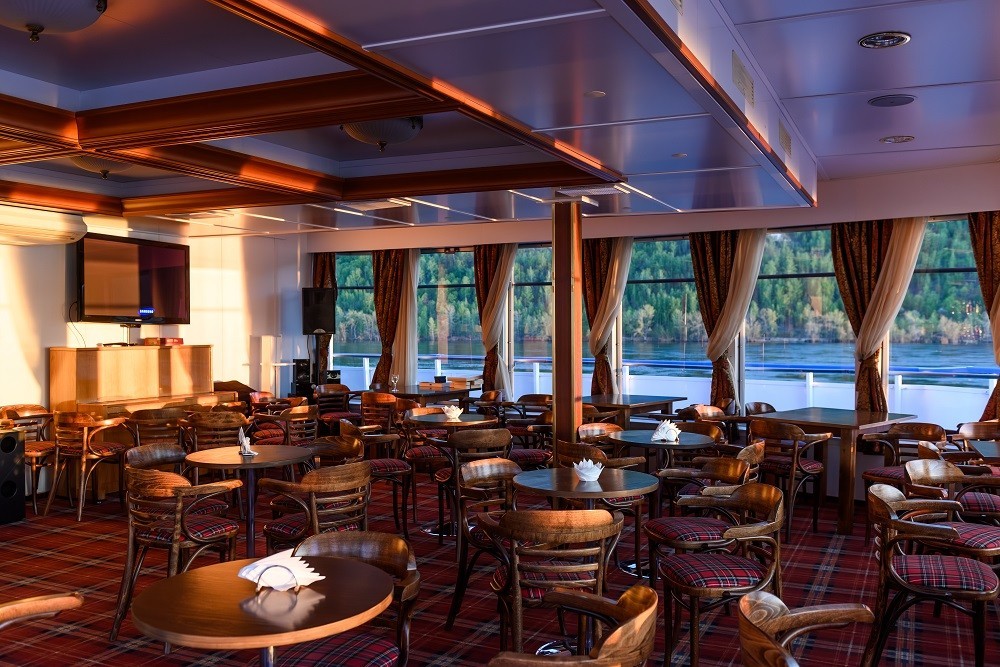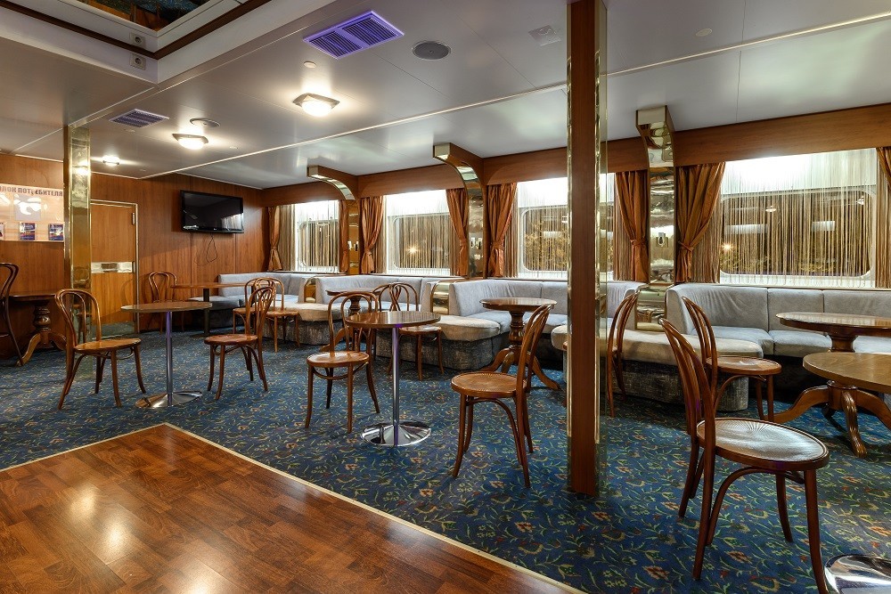 На борту теплохода разнообразие развлечений и удобств: небольшой бассейн и просторная солнечная палуба с местами для загара, три бара с разнообразными напитками, уютный ресторан, современный конференц-зал и лаунж-зона для спокойного чтения. Для отдыха и восстановления сил доступны сауна и медицинский пункт, обеспечивающий безопасность и комфорт во время путешествия.