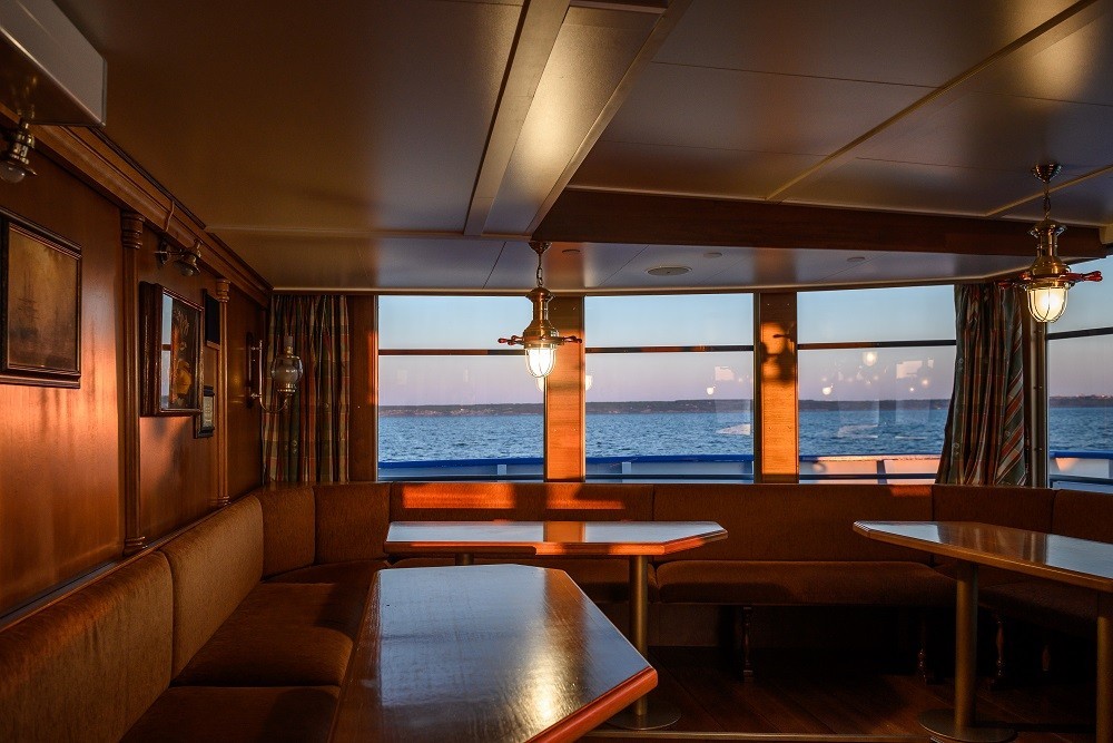 На борту есть все для приятного отдыха: небольшой бассейн и места для загара на солнечной палубе, три бара, ресторан, конференц-зал, лаунж-зона для чтения, сауна и медицинский пункт.