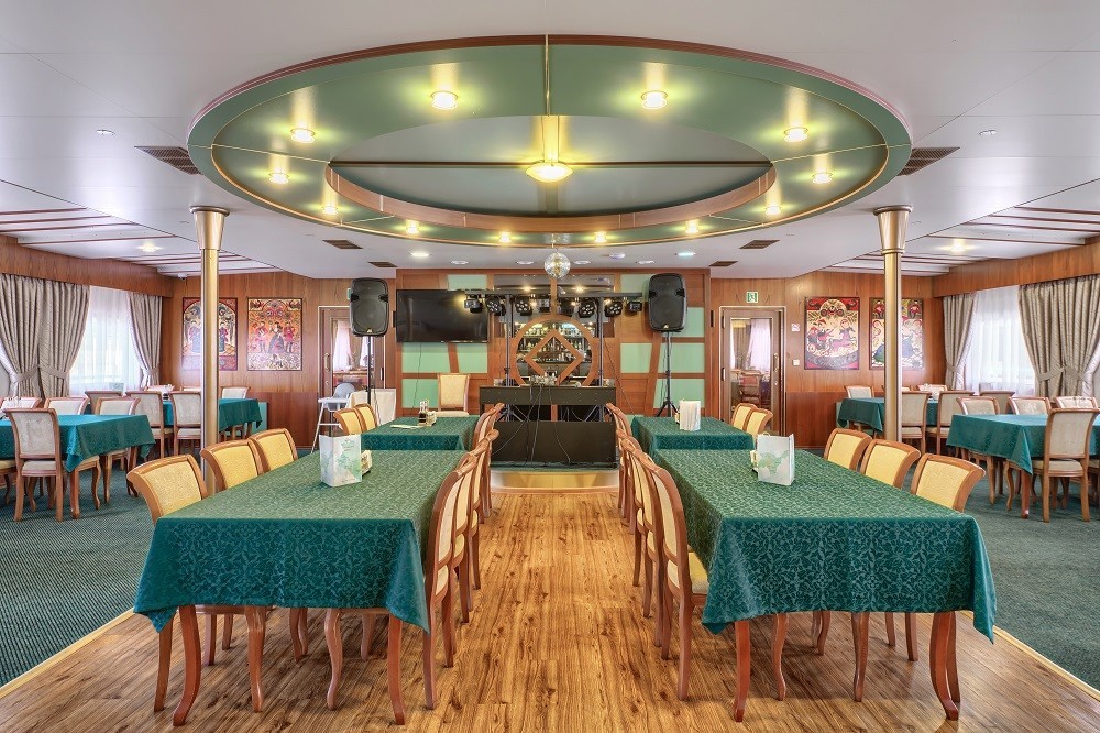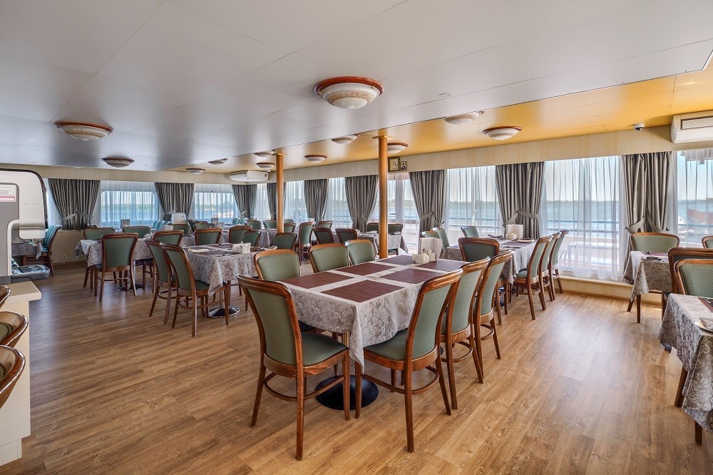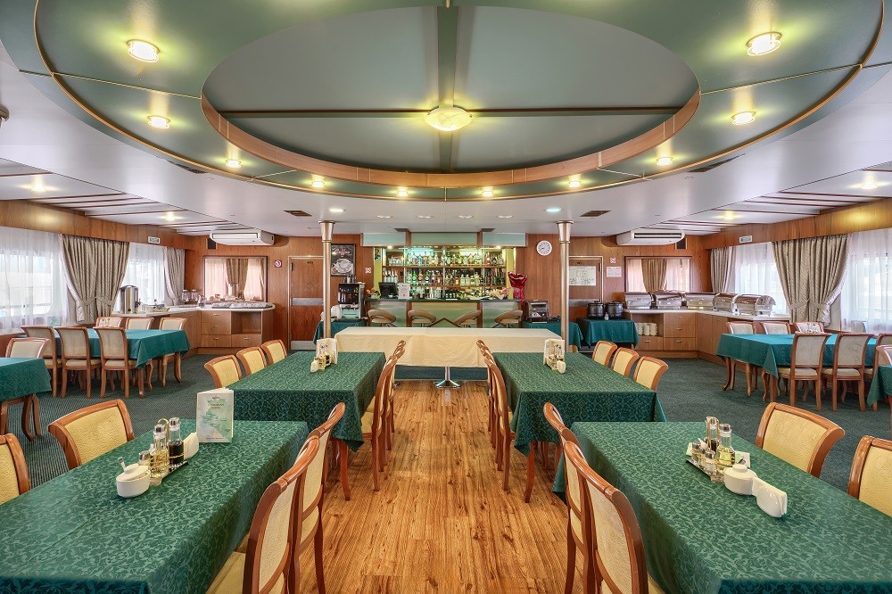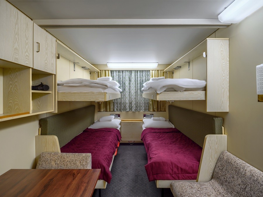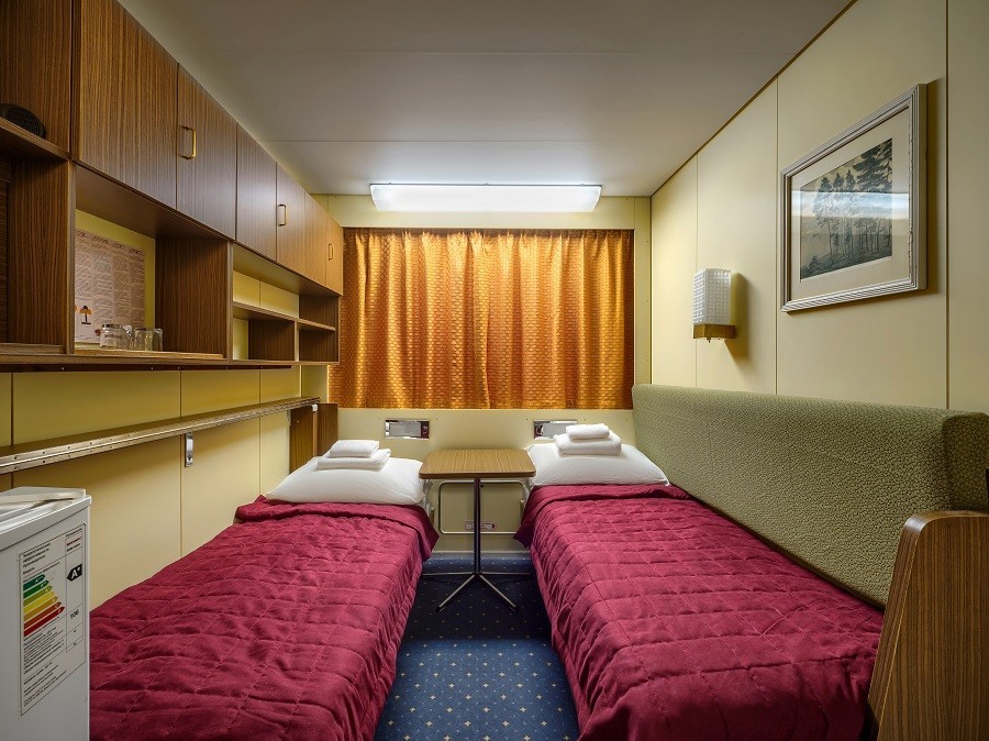 На теплоходе есть каюты разных категорий: 2 каюты «Люкс» с дополнительным комфортом и сервисом, 10 одноместных, 128 двухместных одноярусных и 6 четырёхместных двухъярусных. Каюты оснащены всем необходимым для удобства — шкафом, холодильником, кондиционером, душем, санузлом и обзорным окном или иллюминатором.